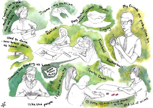 Working with Cartwheel Arts and University of Manchester on the Organisations of Hope project, several groups were documented through visual minutes as part of the research. Working together with a team of artists, practitioners, and researchers, we designed creative methods to capture data around cultural assessts in different parts of Greater Manchester. As part of the project, I also recorded visual minutes of some of the sessions.