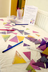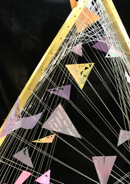 Working with the 'Triangle' methodology that is used with participants, this piece is created as a stand-alone structure on which delegates contributed their own artwork, stories and response for others to add to. Over the course of the day the sculpture changed, formed new shapes and grew through others' collaborations.