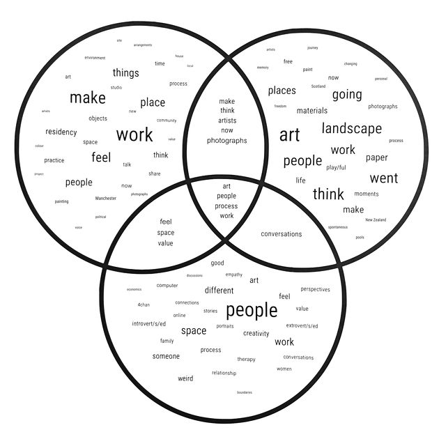 Influenced by relational aesthetics, hermeneutics, and dialogical art, this series involves talking one-to-one with creative practitioners and artists about their creativity. Conversations made into tangible form, these spaces are formed from three individual conversations that took place between 26th February and 9th March, ranging from 1hr 27mins to 2hr 27mins.
