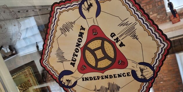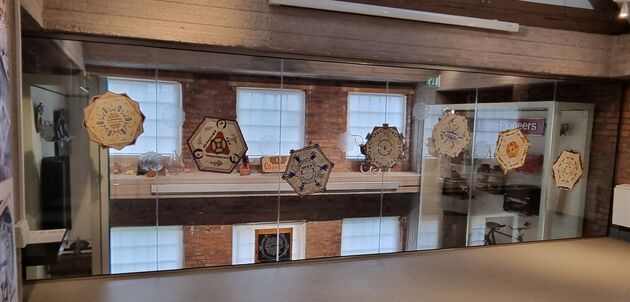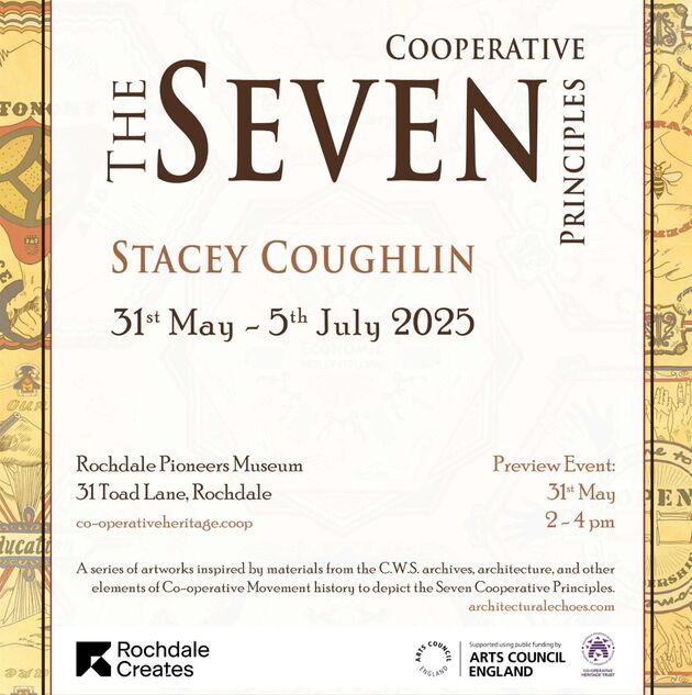 These seven pieces each represent one of the Cooperative Principles. The designs have been created using imagery, references, and ideas around the Co-operative Movement history incorporating artefacts from the National Co-operative Archive, C.W.S. packaging, logos, and other sources. Some of these include: